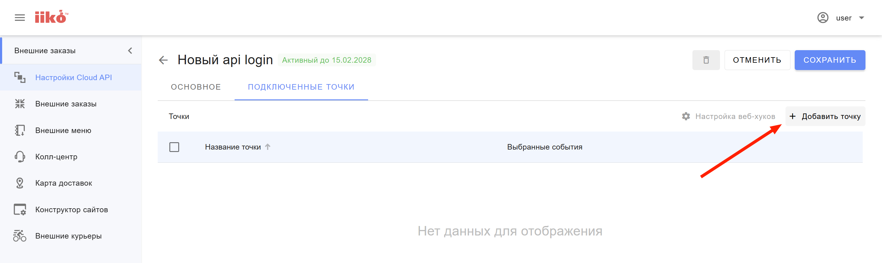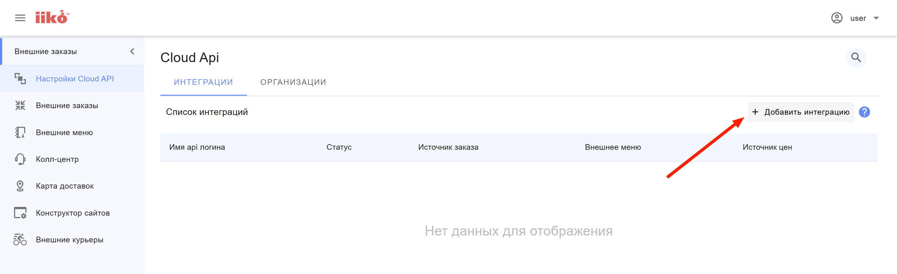 В списке интеграций в iikoWeb должен появиться новый API логин (API ключ).