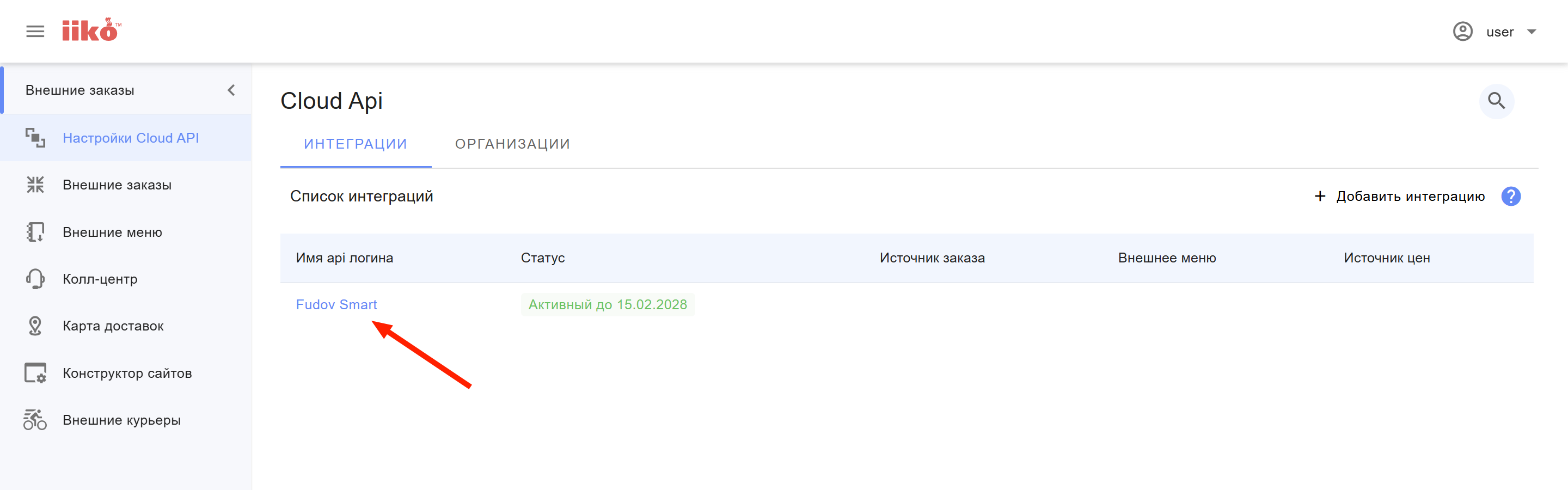 В списке интеграций в iikoWeb должен появиться новый API логин (API ключ).