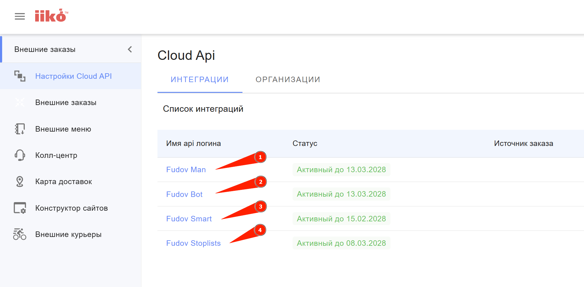 В списке интеграций в iikoWeb должен появиться новый API логин (API ключ).